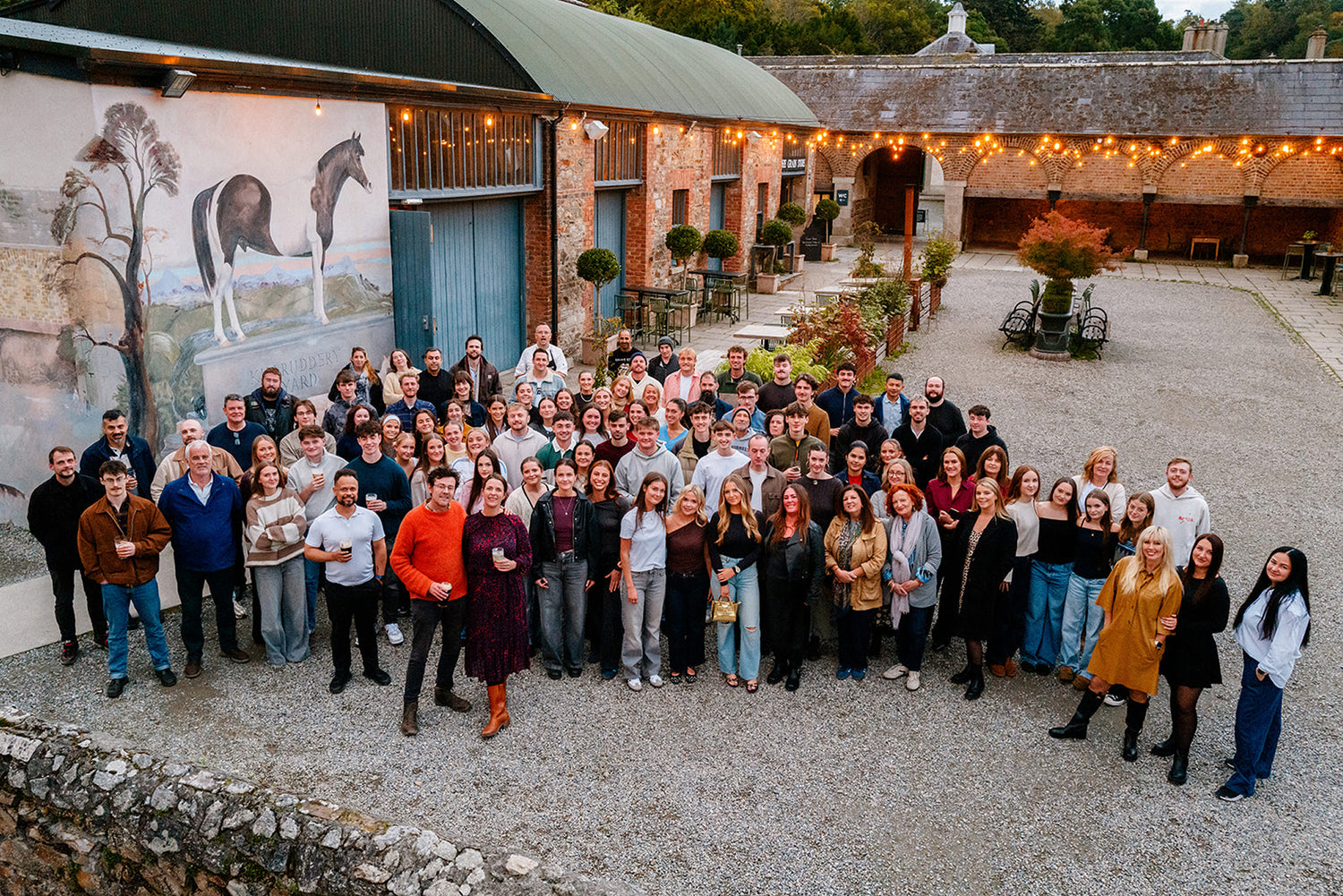 Killruddery now supports over 150 jobs across its Estate, including 45 full-time team members and 12 under the Earl of Meath Office. This photograph was recently taken of partners and team alike celebrating together at the Grain Store.