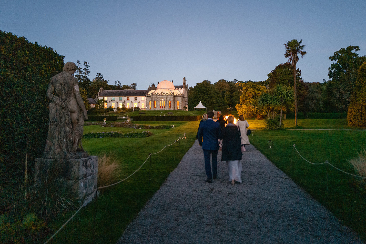 your reception into the formal rooms – the Library, Drawing Room and Portraiture Hall – at the heart of our house.Formal Rooms or "Full House" Receptions are available up to 19.00 hours, this can be followed by a fire-lit walk through the Gardens for dinner and dancing in the Grain Store.