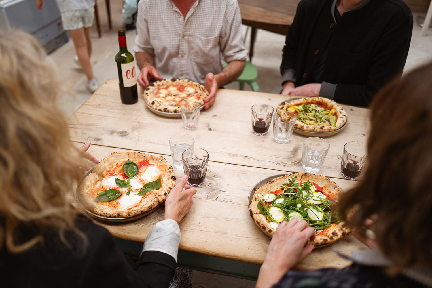 There is plenty of seating to dine with us—or you can pre-purchase pizza for delivery to base camps on the estate.